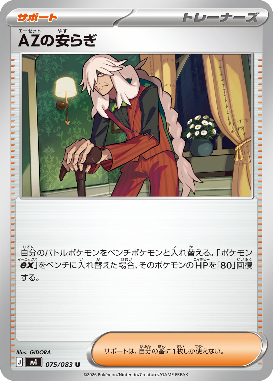 - 自分のバトルポケモンをベンチポケモンと入れ替える。「ポケモンex」をベンチに入れ替えた場合、そのポケモンのHPを「80」回復する。